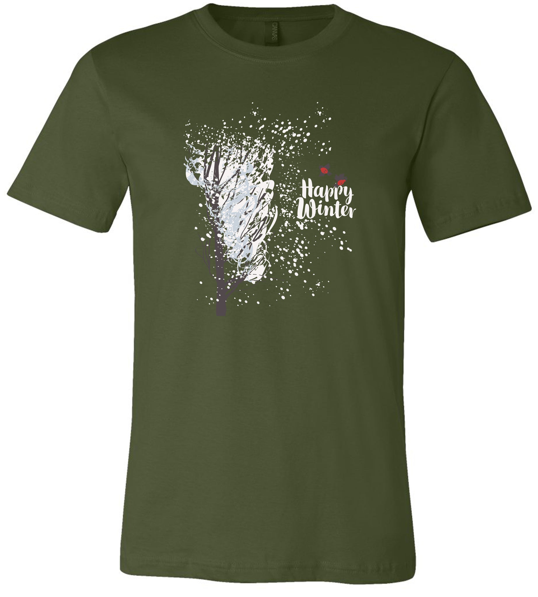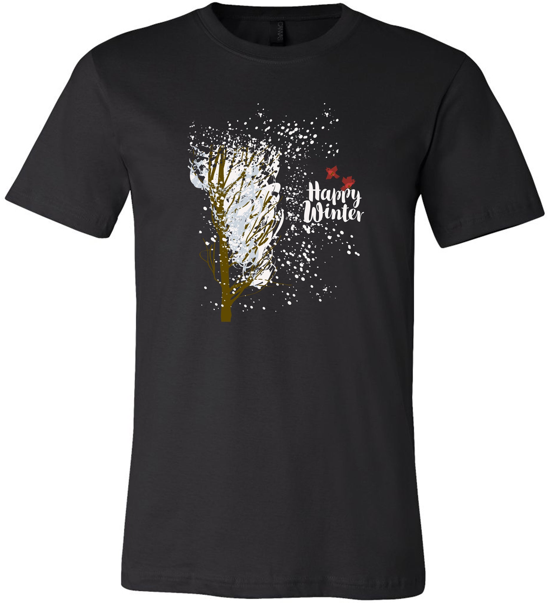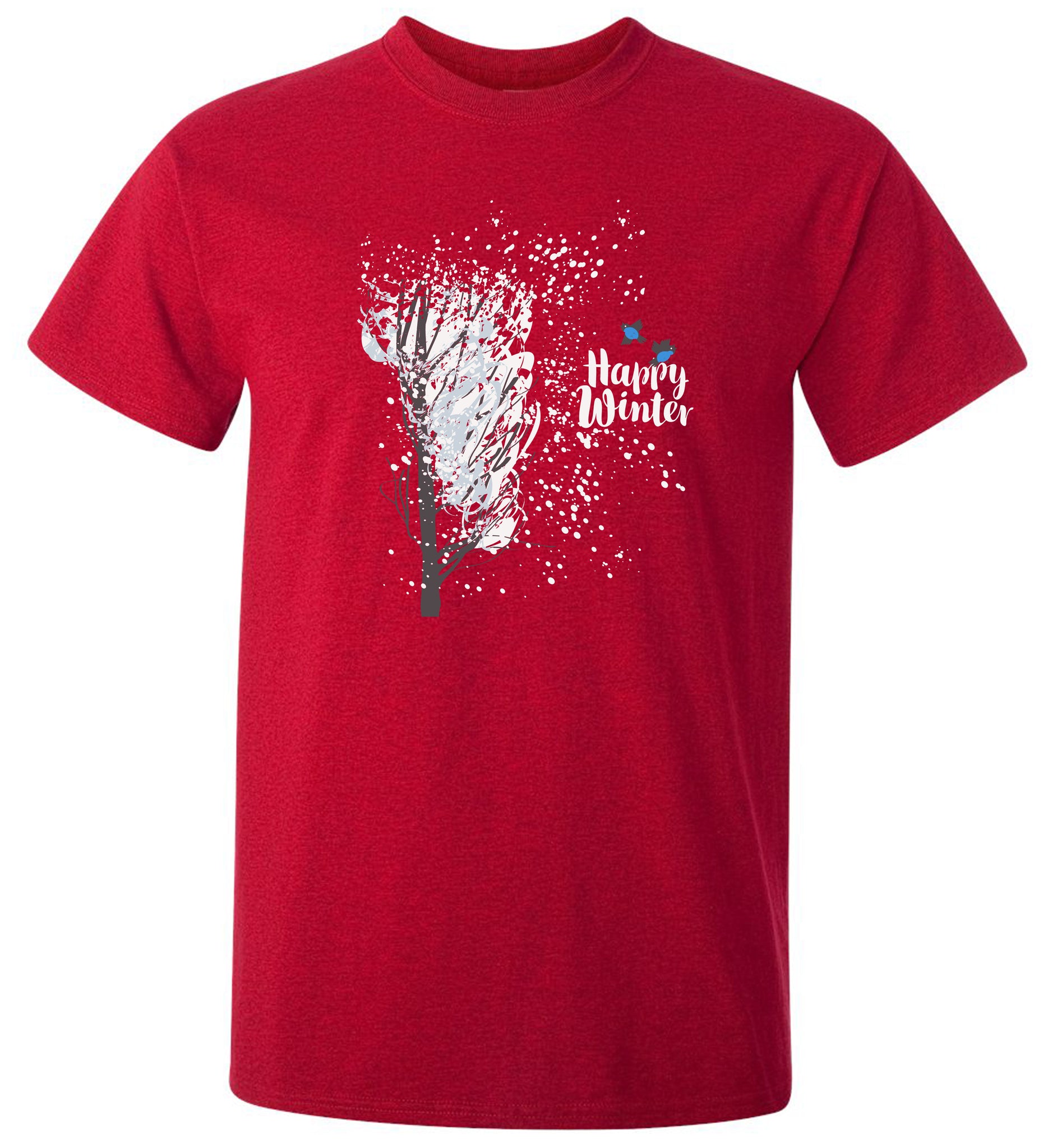 Direct to Garment Print, Adult Unisex Sizes, Happy Winter Graphic Tee.